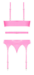 Your love life is about to get a lot sweeter; here's the recipe. Take luscious, wet look fabric, dip it in hot pink bubblegum and add matching wet look trim. Then decorate with playful O-rings and fetish inspired straps and behold one very bad girl.
