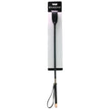 Long and firm, a sturdy handle gracing the base, the Please is secure and stable in hand- loop the oversized wrist strap over the hand for maximum control. In deep black vegan leather with nickel free metallic accents, the Tease Crop wipes clean in a flash.