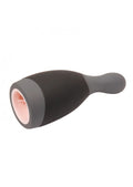 This uniquely designed masturbator is in a category of its own. A grip friendly, ergonomic design allows complete control over your stroker speed sensations. Featuring a combination of 12 rhythmic speeds and patterns, this vibrator stroker is bound to give you the ride of your life. The interior of the hollow chamber is lined with pleasure inducing ridges, creating the ultimate in male satisfaction. The soft, specially shaped chamber is designed to enclose the head of your cock with powerful sensations. Lube up, place your penis in the end, and select your desired level of vibration, then let the vibration of the stroker do all the work.