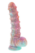 Discover deep cosmic vibes with this big, girthy flexible toy that gives a whole new meaning to 'creature comforts.' Crafted with unusually textured, multicolor body-safe silicone, this fantasy-inspired vibrator has 8 graduated rings on its shaft, textured balls and a powerful suction cup base for out of this world hands-free pleasure. Try Turbo Mode to really send your orgasm into the stratosphere!