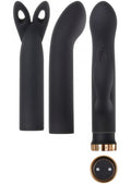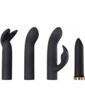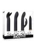 Discover four unique experiences with one versatile toy! Evolved’s workhorse durable 7-speed bullet forms the powerful foundation for your choice of G-spot exploration, dual orgasms and bunny ear clitoral pleasure –not to mention classic bullet play all on its own. There are no wrong decisions, only deep satisfaction from the bullet and three different silicone shapes that slip onto it with ease, even underwater since every combination of Four Play is completely water submersible! Clean with Toy Cleaner and a warm water rinse.