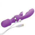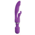 Play in so many new ways with this dual-ended 10” silicone rabbit vibe! Up top, a 3-speed rollerball inside the shaft rolls back and forth, mimicking the massage of a finger for intense G-Spot stimulation. Then let the clitoral stimulator bunny buzz you with 7 powerful vibration functions. Or turn it around and feel its bed-shaking 7 function wand massager head