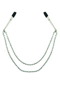 - This 20 inch (50.8cm) doubled strand of sparkling bling will give you a formal feeling while the rubber-tipped nipple clips serve as a constant reminder that all are entitled to feeling a little pain with their pleasure