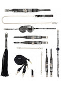 The New York Collection Kit by Ouch! comes in a gorgeous handbag, with a high end iridescent look on its hardware, and it includes a collar and leash, a set of handcuffs, and set of ankle cuffs, a blindfold, a breathable ball gag, a flogger, an under the mattress restraint, and a rechargeable vibrating bullet.