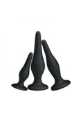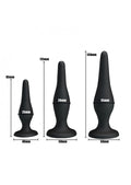 A solid soft silicone butt plug kit with graduating sizes for total anal satisfaction. These silicone butt plugs are tapered for ease of insertion, smooth and soft, yielding copious amounts of pleasure. Start with the smallest and work your way through the sizes in this incredible kit . For those who haven't yet explored the pleasures of anal play it's time to give it a go.