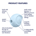 A playful fish-look design and the enticing combination of pressure waves and vibration make the Satisfyer Sugar Rush an ideal product for newbies.Thanks to its compact shape, you have everything under control during play. What’s more, you can also transport the pressure wave vibrator discreetly and easily on the go - it’s the perfect travel companion! The supple head fits perfectly around the clitoris and feels simply wonderful.