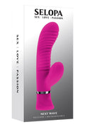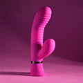 This vivid dual vibrator has wavy grooves on both shafts for unique stimulation and a curved design to reach interior erogenous zones with ease while its 2 powerful motors amp up simultaneously through multiple speeds and patterns.