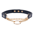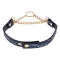 This elegant piece, crafted from animal-printed faux leather, is adorned with subtle gold hardware, making it a stylish accessory for any occasion. The gold ring that hangs from your neck can be used for playful tugs or to attach a leash, adding an extra layer of excitement to your encounters. Wear it as a bold statement or a discreet symbol of your wild side, and let your inner feline shine.